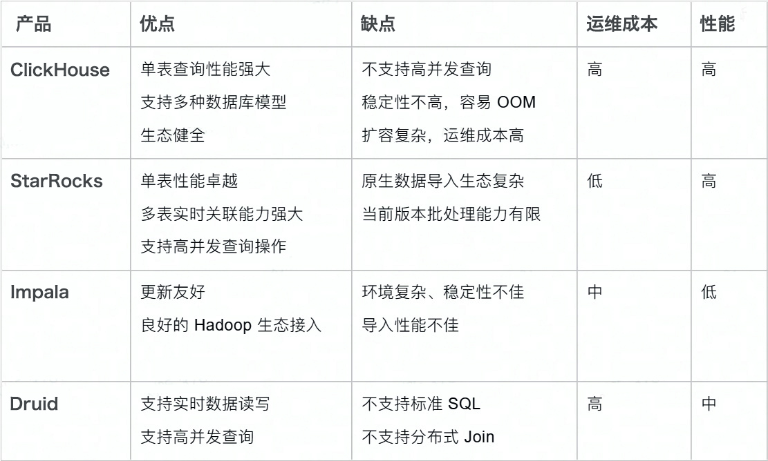在 HBase 中,数据以 KV 形式存储,只能提供点查能力,不具备复杂的统计分析能力; 无法使用 Bitmap 相关技术,需要将需要的指标事先计算出来,方式不够灵活,不能做集合操作; 流程链路较长,维护复杂度高,不具备模型抽象能力,业务升级有所不便。