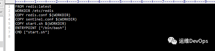 下面的Dockerfile是运行redis以及哨兵的例子,其中以redis为基础镜像,将redis,conf配置文件和哨兵配置文件copy到容器中,并将启动脚本也拷贝进去,最后执行脚本 ,如图:
