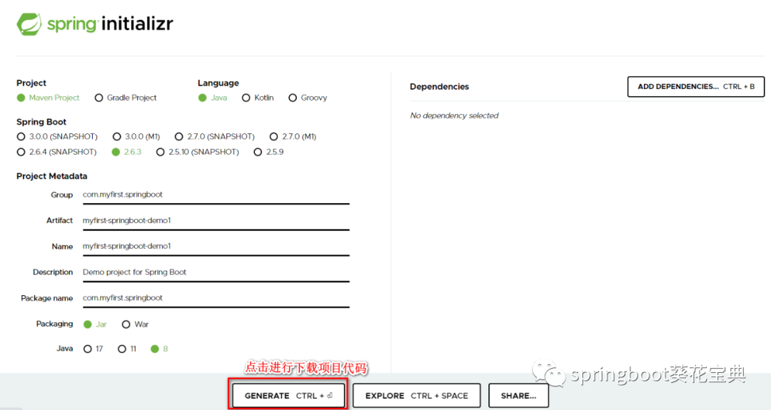 通过访问https://start.spring.io/地址进行创建SpringBoot