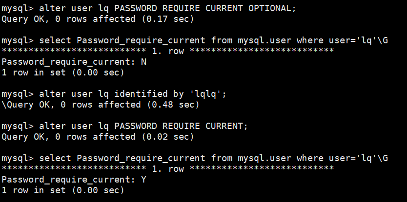 如果账户设置为PASSWORD REQUIRE CURRENT OPTIONAL,密码更改可以但不需要指定当前密码。