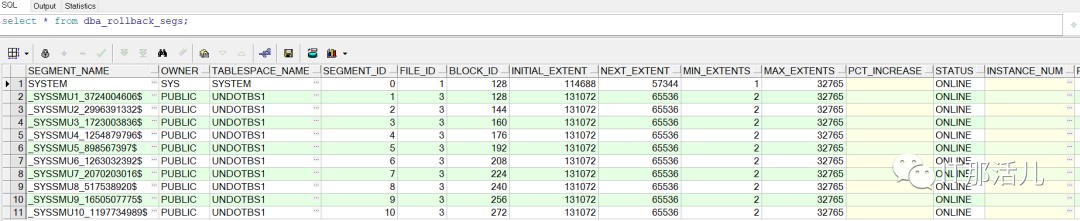 undo段又叫rollback段,undo的前身就是rollback,查询undo段。