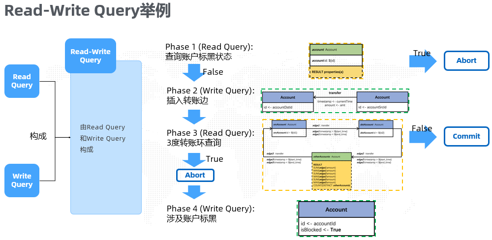 SNB里边读跟写是分开的。在金融图里读写是有可能在同一个Query里边的。我们会找很多的环状的结构三角的结构,这些都是跟SNB不一样的地方。所以这也是促使我们去做金融图Benchmark的一个主要动力。