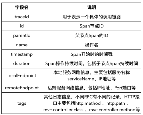 设置了 Zipkin 埋点的应用服务,默认会使用 Json 格式向 Kafka 上报 Span 信息,上报的信息主要有如下几个注意点: