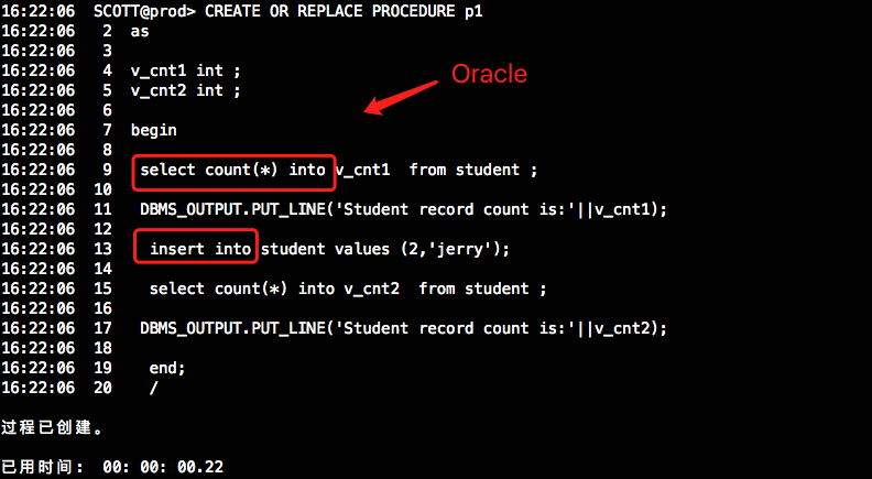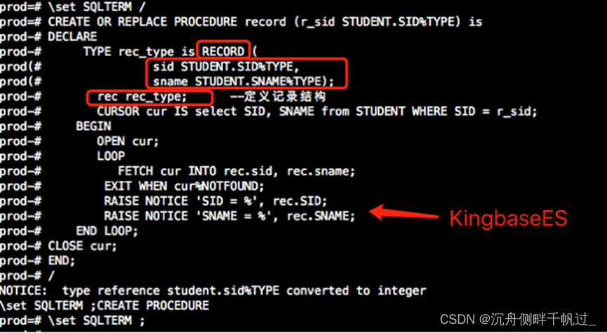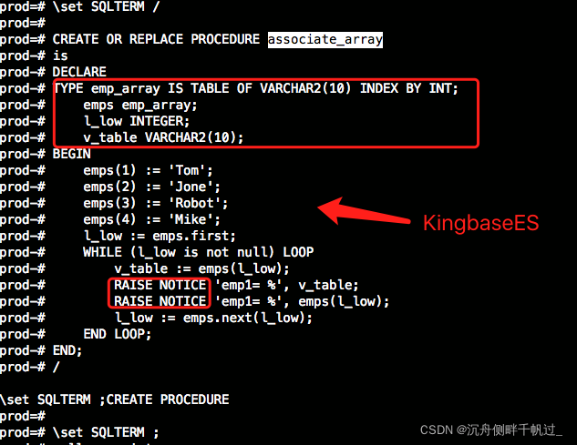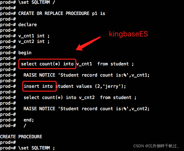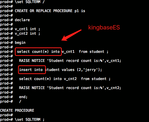 在上述语句上,KingbaseES和Oracle兼容。如下图2-7和2-8 ,KingbaseES和Oracle plsql语法的对比。