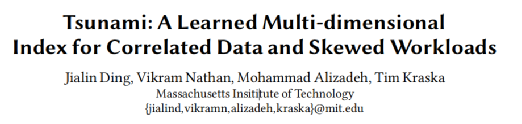 在进行数据分析时,我们经常需要从大量数据中过滤出需要的数据。然而,当我们需要对多个属性进行过滤时,查询效率往往就会大大降低。另外,数据相关性和查询负载分布不均匀的存在也给查询效率带来了不小的影响。如何才能有效地解决上述问题呢?本篇文章将带来由MIT Data Systems Group发表在国际顶级的数据库会议VLDB 2021上的论文:《Tsunami: A Learned Multi-dimensional Index for Correlated Data and Skewed Workloads》。