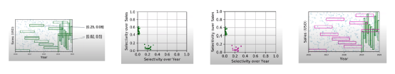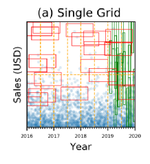 查询负载分布不均匀称之为查询倾斜,如图 3所示,在2019年之前,查询范围往往在Year上跨度较大,而在Sales上跨度较小,在2019年之后情况又与之前相反,这种现象就是查询倾斜,即查询的特征在不同的数据空间范围内不尽相同。