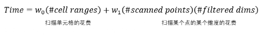 由于S的搜索空间为指数级,不能简单地遍历得到最优划分方案。于是Tsunami采用自适应梯度下降得到最优解。优化的目标是使得处理查询的时间最小,这里使用简单的线性模型计算该时间: