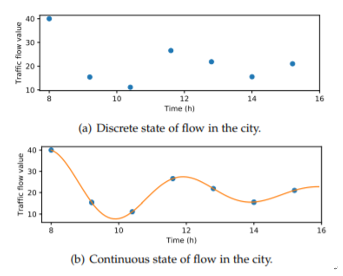 在城市时空大数据预处理部分,我们按经纬度对地图进行划分,然后将流量数据、POI数据等映射到相对的位置并处理成矩阵或张量形式。我们将划分的每个区域作为实体,区域之间的流量模式作为关系。