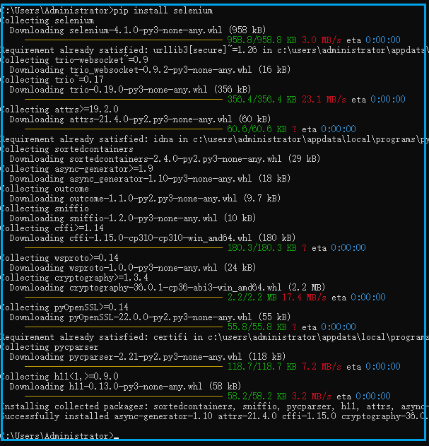 在python交互模式,测试 selenium 是否安装正确,使用 selenium 打开浏览器