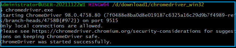 >>> from selenium import webdriver>>> from selenium.webdriver.chrome.options import Options>>> opt = Options()>>> opt.binary_location = r'C:\Program Files\Google\Chrome\Application\chrome.exe'>>> driver = webdriver.Chrome(options=opt)
