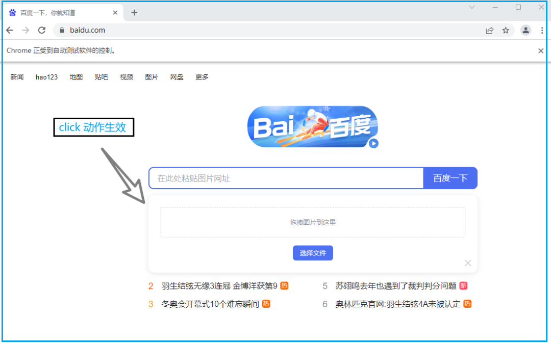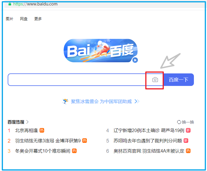我们的目标是模拟手点一下搜索中的相机小图标,它是百度的搜图功能。