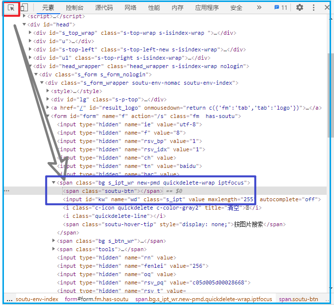 这个图标是 class名叫 ”soutu-btn" 的节点,我们在 selenium 中定位这个节点,然后执行 click 动作