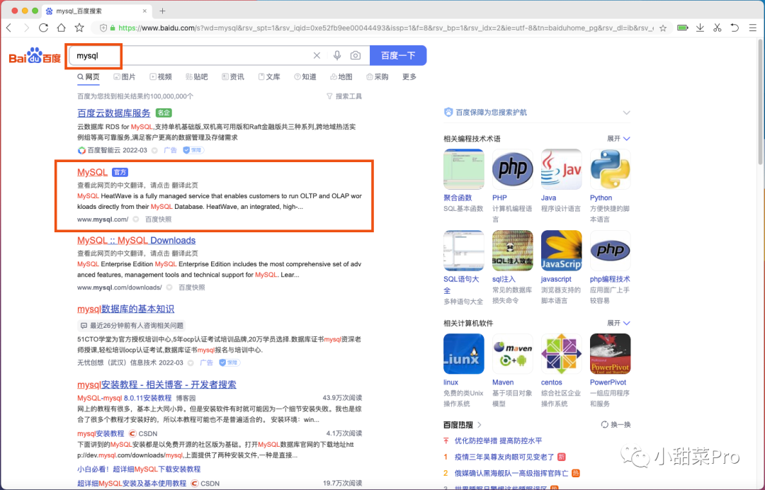 打开浏览器搜索「 mysql 」,并点击MySQL官方网站