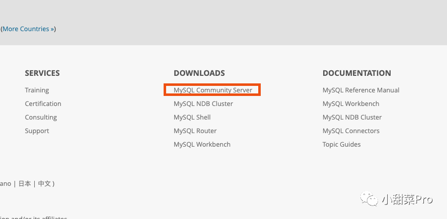 在官网中下拉到最下方点击Downloads中的「 MySQL Community Server 」