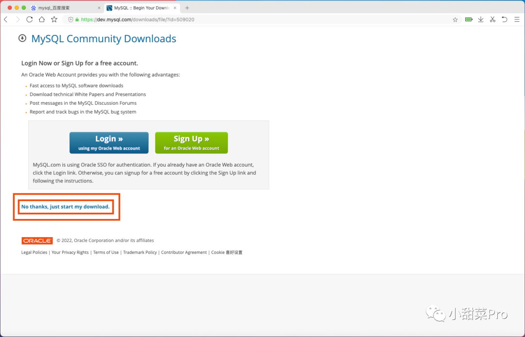 当出现这个页面时点击下方的「 No thanks, just start my download. 」即可自动下载