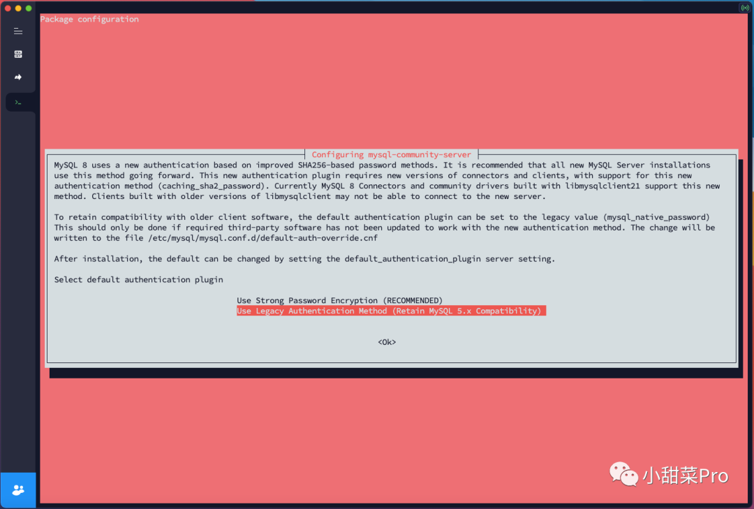 选择第二个「 Use Legecy Authentication Method (Retain MySQL 5.x Compatibility) 」