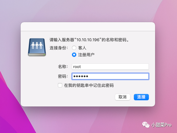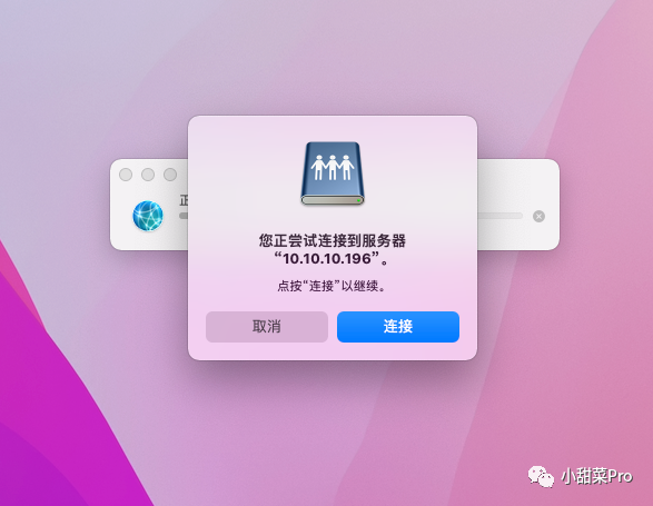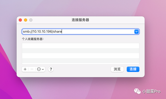 输入「 smb://10.10.10.196/share 」,点击「 连接 」