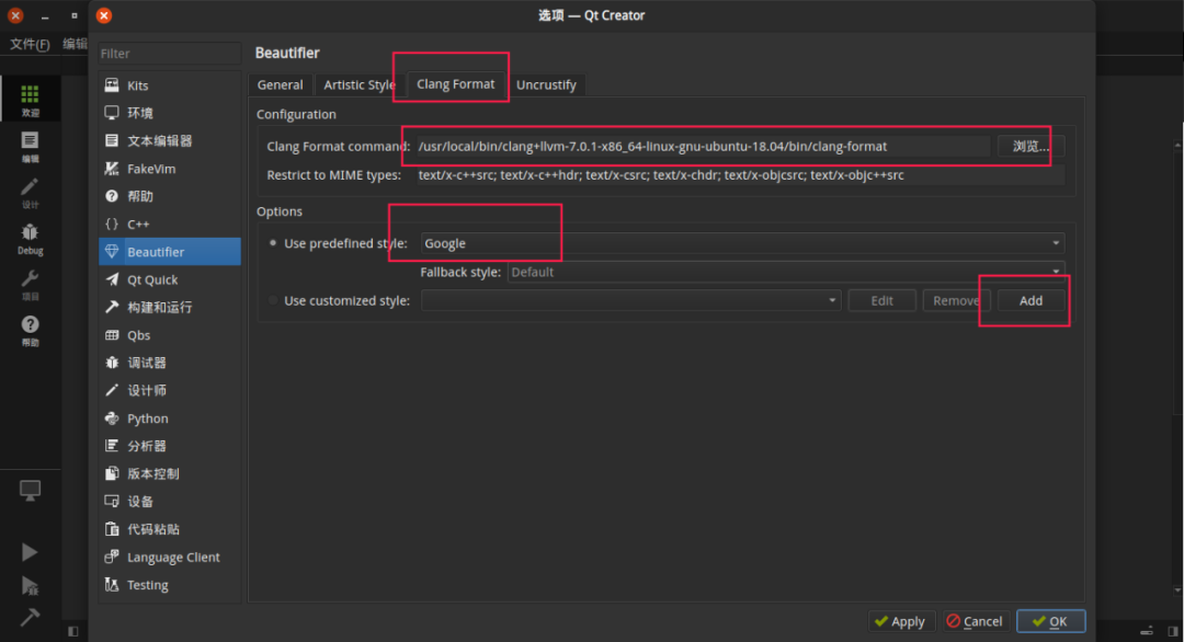 那么如何优雅的实现全面的代码风格格式化?这就需要利用 Qt Creator 内置的 Beautifier 插件。