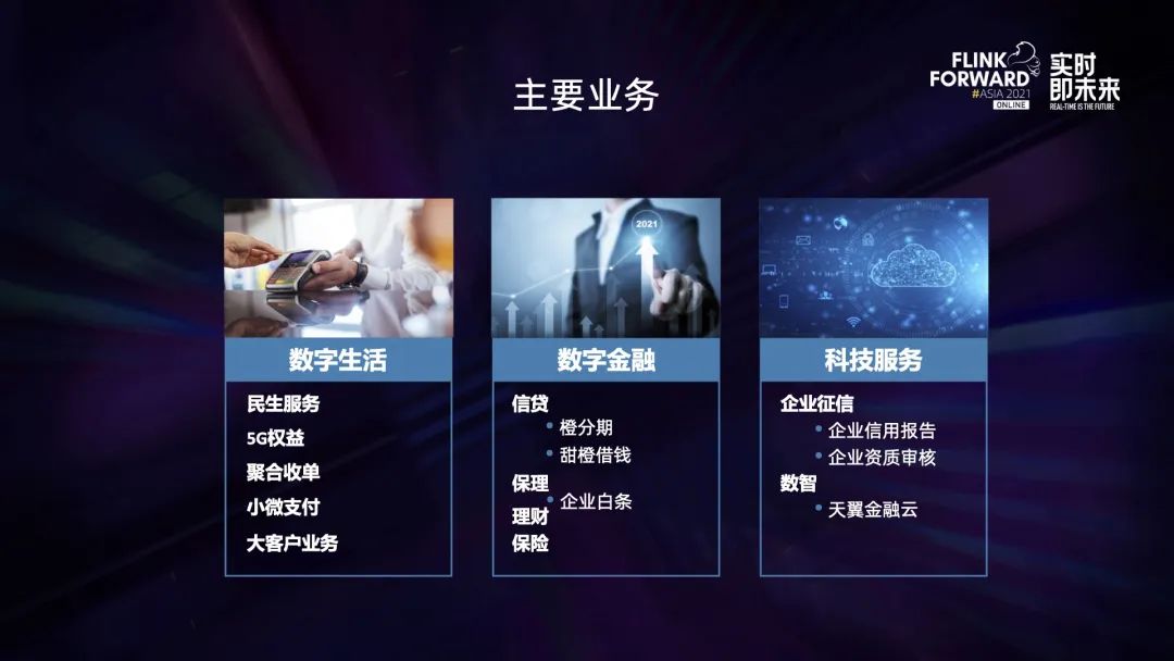 公司主要的业务板块分为数字生活、数字金融及金融科技服务。其中数字生活主要是指常规的支付业务,例如民生缴费,即居民的水电煤气费缴纳等等,同时我们会结合电信联合推出 5G 的权益套餐;数字金融主要是包含保险、理财、信贷,其中橙分期和企业白条是重点产品;科技服务主要分为企业征信及数智业务,企业征信是指依托现有的云计算、大数据、人工智能、区块链等核心科技能力,打造专业高效智能的风险管理及征信科技解决方案。数智业务是指以天翼云为基础平台,重点聚焦 SaaS/PaaS 服务及金融安全服务,打造端到端的金融解决方案。