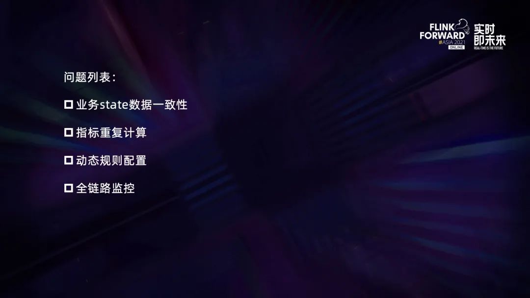 业务 State 数据一致性、指标重复计算问题、动态规则配置以及全链路监控监控问题。