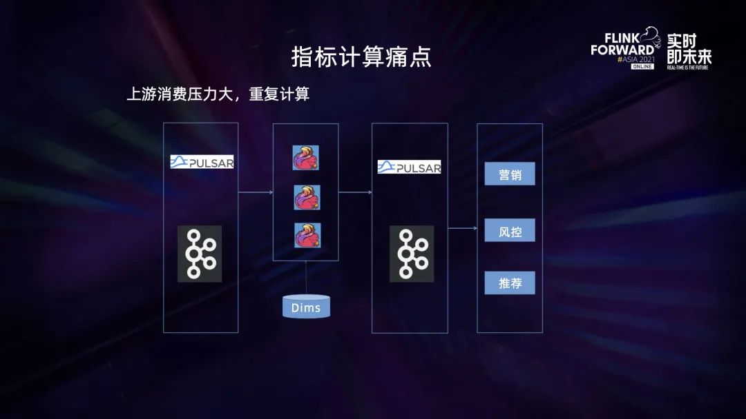 其次是指标作业在不断新增过程中存在的痛点,多个作业重复消费同一个 Kafka 导致上游消费压力大以及指标重复计算的问题。