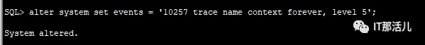 alter system set events = '10257 trace name context forever, level 5';