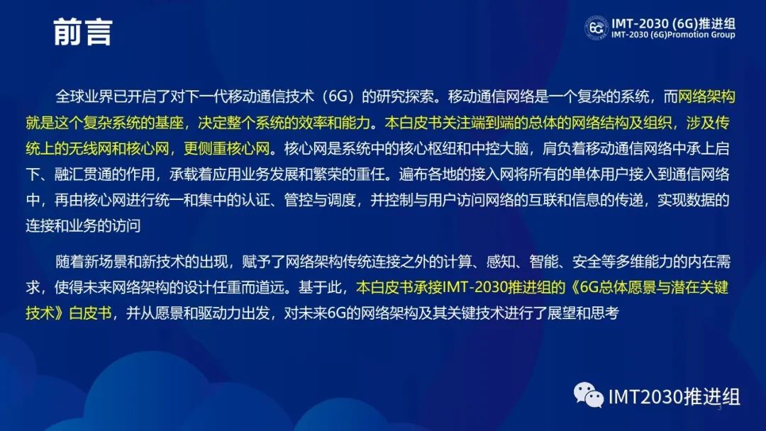 1)网络技术的创新将在6G网络中发挥更重要的作用,网络架构的创新将是6G的核心创新之一。