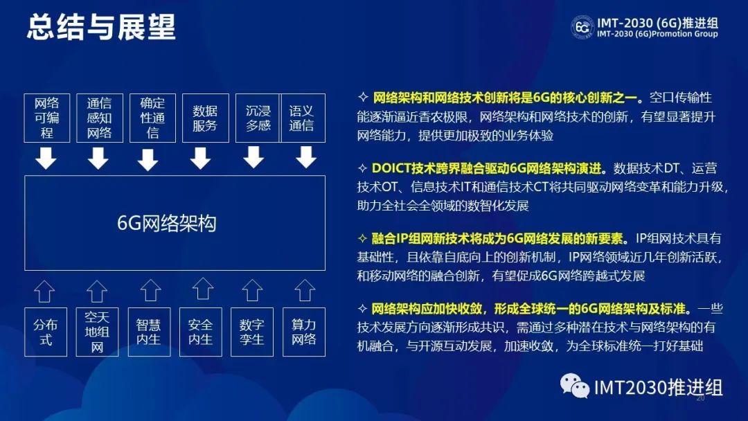 IP技术具有基础性,且依靠自底向上的创新机制,所以创新难度大、周期长,但是IP网络领域近几年创新活跃,和移动网络的融合创新,有望促进6G网络跨越式的发展。