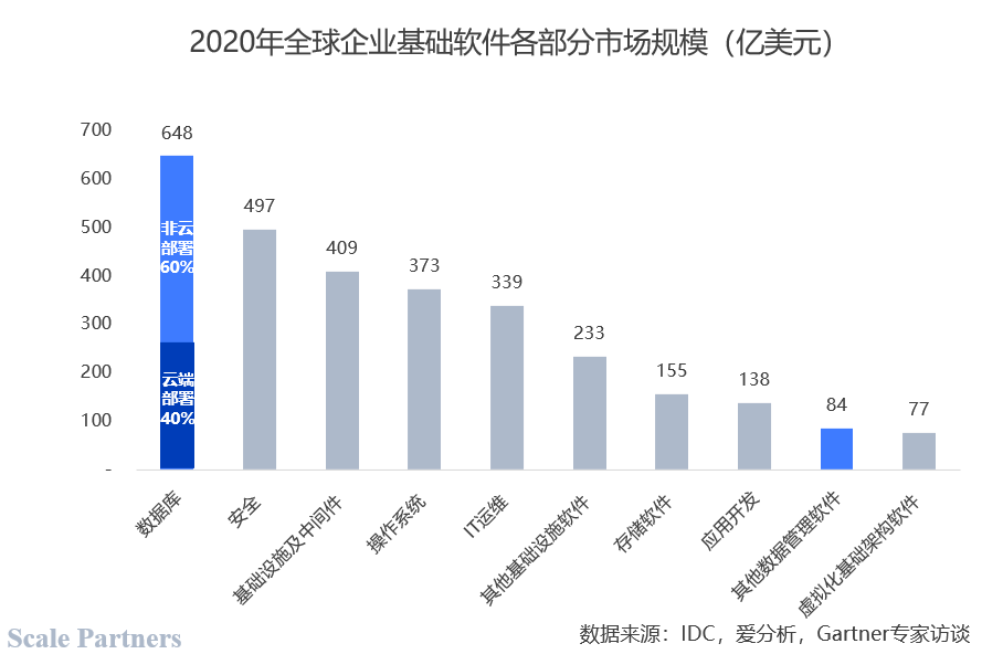 Gartner报告显示,2020年全球数据库市场规模为648亿美元,占基础软件支出最大构成。未来,数据库市场的规模还将继续增长,预计到2024年,全球数据库市场规模将达到1000亿美元。