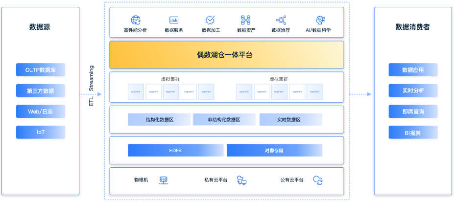 兼容性强:具备完善的SQL标准和ACID特性,支持HDFS和多种对象存储的增删改查、以及偶数自研的Magma存储。兼容基于Oracle,PostgreSQL,Greenplum开发的数字应用,用户可以轻松实现不同数据基础设施的平稳迁移;