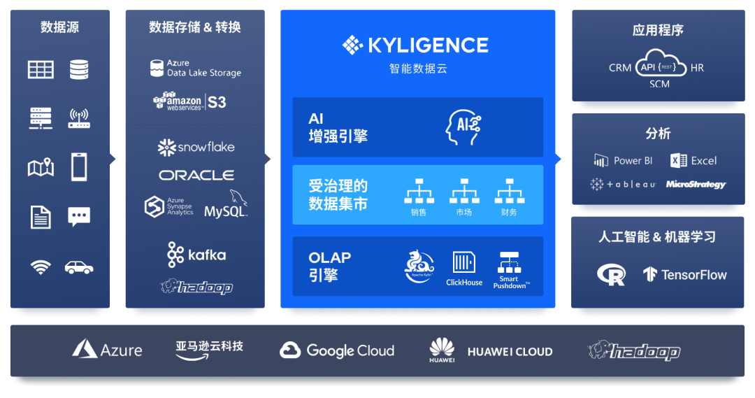 领先的全场景 OLAP 引擎 ,为 PB 级数据提供高并发、亚秒级查询性能,并可无缝集成 Hadoop/Spark 架构或基于云原生架构,提供去 Hadoop 架构,支持在公有云、私有云、本地环境部署,并实现存储与计算分离,支持计算资源按需弹性伸缩。Kyligence 智能数据云的产品设计基于开源理念,技术上自主可控、包容开放,具有简单易用、高性能、高并发特性,最大化利用资源提高效率,节省 TCO。