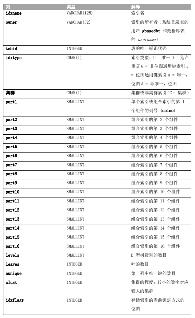 2.36 SYSINDEXES sysindexes 表是基于 sysindices 表的视图。它对数据库中的每个索引包含一行。 sysindexes 表具有以下列。表 18. SYSINDEXES 表列描述