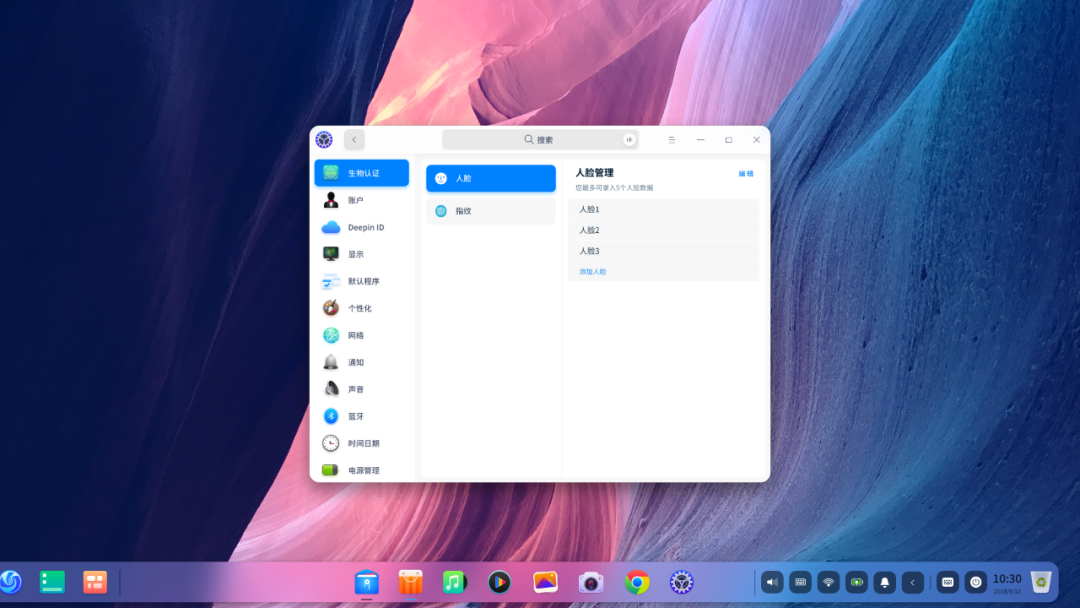 用户可以录入面容、虹膜生物特征信息用于系统的身份认证和鉴权。