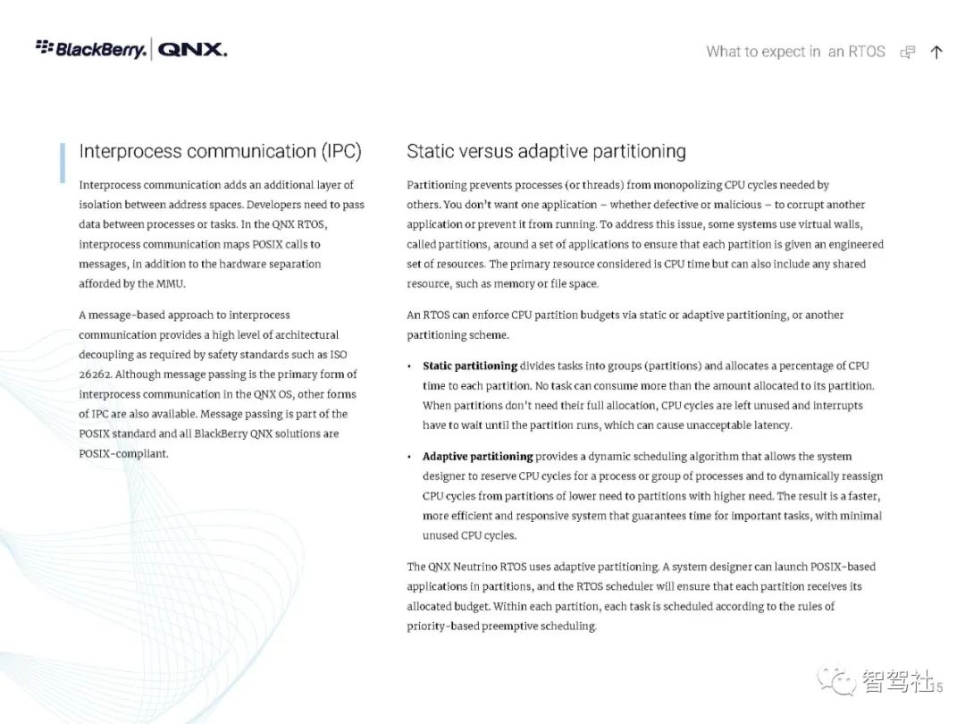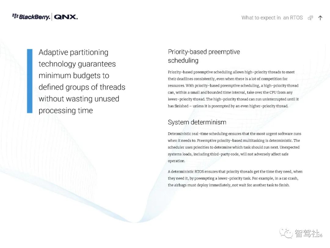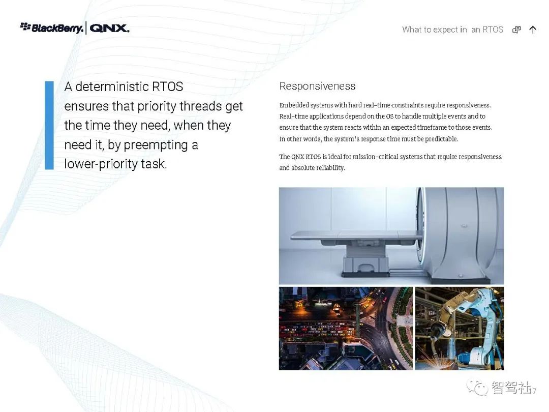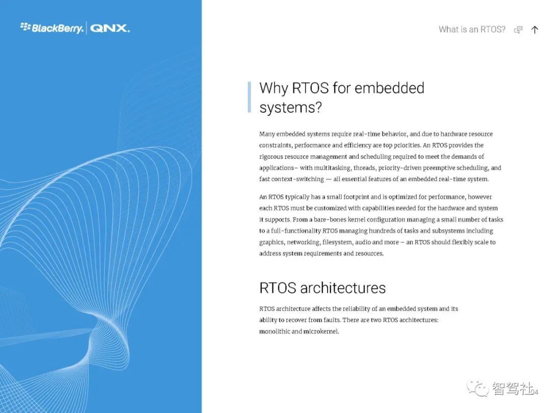 自 1980 年以来,制造商一直依靠 QNX 实时技术为其任务关键型应用提供动力--从医疗仪器和互联网路由器,到车载信息娱乐设备和 911 呼叫中心,再到核监控系统和军事通信,无所不包。无论是小型还是大型,无论是简单还是分布式,这些系统都有一个无与伦比的声誉,那就是一年365天、一天24小时不停地运行。QNX Neutrino 实时操作系统经受了时间的考验和实践的检验,它是在真正的微内核架构上建立的。在这种系统下,每个驱动程序、应用程序、协议栈和文件系统都在内核之外、受内存保护的用户空间安全运行。几乎所有的组件都可以在不影响其他组件或内核的情况下发生故障并被自动重新启动。没有其他商业实时操作系统能提供如此高水平的故障控制和恢复。QNX Neutrino 实时操作系统本身是模块化的,它能让你动态地升级模块、引入新功能或部署错误修复程序,而无需花费昂贵的停机时间或系统中断。人机界面技术变化很快。如果您的平台跟不上,您可能会被过时的、不支持的软件所困。QNX Neutrino 实时操作系统有一个独特的组合管理器,能从多种技术中创建一个统一的界面。它的通用应用平台能够在新的人机界面技术出现时添加这些技术。这使你可以使用最合适的图形技术,无论是视频、OpenGL ES、HTML5还是Qt5。QNX Neutrino 实时操作系统按照 POSIX 标准(1003.1-2003 POSIX.1)设计,只需简单地重新编译,就能移植传统的和开源的 UNIX、Linux 和互联网代码。通过标准的应用程序接口,可以重复使用应用程序代码,避免代价高昂的延迟,并缩短其学习曲线--加快开发周期,缩短上市时间。此外,QNX Neutrino 实时操作系统还预先集成了对各种连接技术、安全和防故障文件系统以及内置高可用性解决方案的开箱即用支持。QNX Neutrino 实时操作系统具有创新的安全机制,旨在帮助你轻松构建不可攻破的设备。加密文件系统、内存保护页和有限的根权限是该操作系统的核心功能,可用于创建安全可靠的设备。它有自适应分区,在过载条件下保证你的应用程序的系统资源,帮助你建立安全可靠的嵌入式系统,而不影响实时性能或灵活性。利用 QNX Neutrino 实时操作系统对各种 ARM Cortex A 系列和 x86 平台的支持,在选定的平台上快速启动开发。利用 QNX Neutrino 实时操作系统的资源管理器,简化了定制硬件的驱动程序开发。框架,与传统驱动程序不同,它能在受内存保护的用户空间中运行。BlackBerry QNX是一家值得信赖的安全操作系统、管理程序、框架和开发工具供应商,并为构建全球最关键的嵌入式系统提供专业支持和服务。该公司的技术在超过1.95亿辆汽车中得到了信任,并被部署在世界各地的嵌入式系统中,涉及多个行业。黑莓QNX成立于1980年,总部设在加拿大渥太华,2010年被黑莓收购。黑莓QNX软件和开发工具以标准为基础,使企业能够在各产品线和业务部门采用可扩展的软件平台战略。黑莓QNX软件组合,包括我们的安全预认证产品版本,是专门为嵌入式系统设计的,并可扩展到支持从单一用途的设备到高度复杂的混合关键性平台。客户依靠黑莓QNX的支持和专业服务团队,在整个产品开发周期内提供他们所需的专业知识。数以千计的公司已经部署了QNX的实时操作系统,以确保任务关键型系统的性能、安全和可靠性的理想组合。QNX 技术的核心是 QNX Neutrino® 实时操作系统(RTOS),它是一种功能全面、符合 POSIX 标准的实时操作系统,能在每个注重可靠性的行业(包括汽车、医疗设备、机器人、运输、重型机械和工业嵌入式系统)中实现新一代产品。微内核可靠性--QNX Neutrino 实时操作系统的微内核架构将每个应用程序、驱动程序、协议栈和文件系统都隔离在内核以外的独立地址空间内。这意味着,故障组件不会导致其他组件或内核瘫痪;它能立即重新启动,对系统性能的影响最小。实时可用性--QNX Neutrino 实时操作系统提供了只有实时操作系统才能提供的确定性。自适应分区等技术能保证关键进程获得按时完成任务所需的周期,同时保持复杂嵌入式系统所需的性能。全面的分层安全--利用 QNX Neutrino 实时操作系统的分层安全功能和 QNX 安全专家的帮助,可以采取全面的安全方法,准确实施的嵌入式系统所需的安全配置文件。可扩展性--QNX Neutrino 实时操作系统可在最新一代多核系统芯片(包括 ARMv8 和 x86-64)上扩展,它支持非对称多处理(AMP)和对称多处理(SMP),以及绑定多处理(BMP),这是 QNX 对标准 SMP 处理器亲和力的改进。板卡支持包(BSP)--由一个广泛的BSP库支持,适用于各种ARMv8、x86-64和旧板卡。QNX 操作系统得到了经过实践检验的开发工具(QNX 软件开发平台)的支持,并通过功能丰富的中间件(用于 ADAS 的 QNX 平台等)和工程服务得到了扩展。黑莓QNX还提供了符合IEC 61508 SIL 3、ISO 26262 ASIL D和其他功能安全标准(QNX OS for Safety、QNX Hypervisor for Safety)的嵌入式操作系统预认证版本。QNX Neutrino 实时操作系统是一种高性能、多线程、适用于 SMP 的微内核实时操作系统,具有开放系统的 POSIX 应用程序接口。QNX Neutrino 实时操作系统是一种高性能、多线程、适用于 SMP 的微内核实时操作系统,具有开放系统的 POSIX 应用程序接口。QNX Neutrino 实时操作系统坚固耐用且可大规模扩展,适用于从小型、资源有限的系统到高端分布式计算环境。全面的 MMU 保护使它能有效地用于关键任务的应用。可靠的架构-QNX Neutrino 实时操作系统的