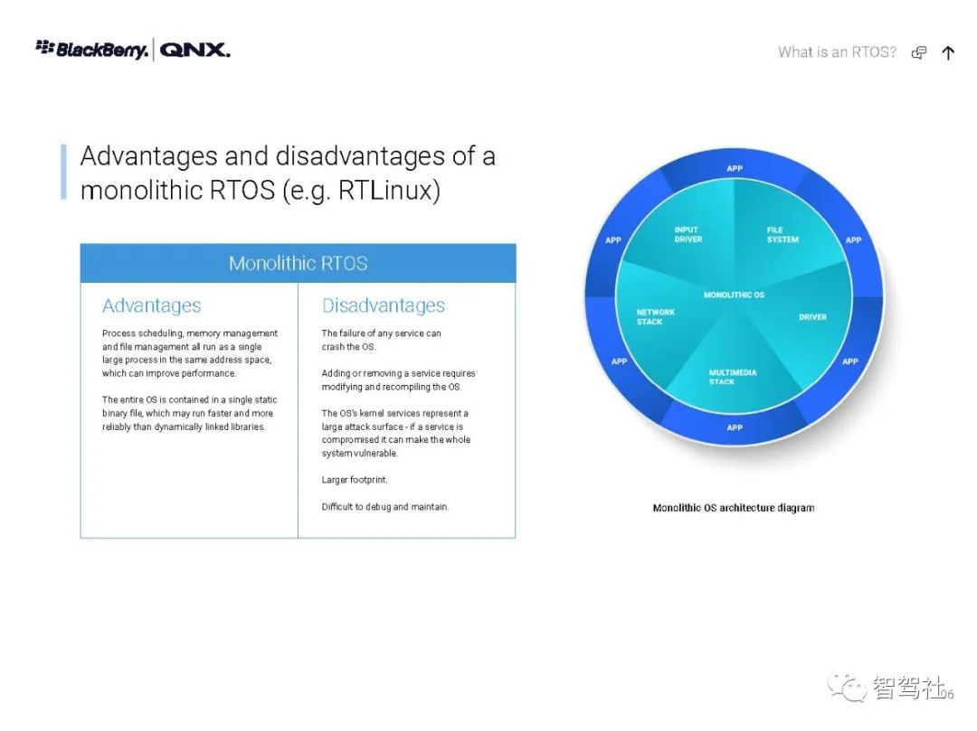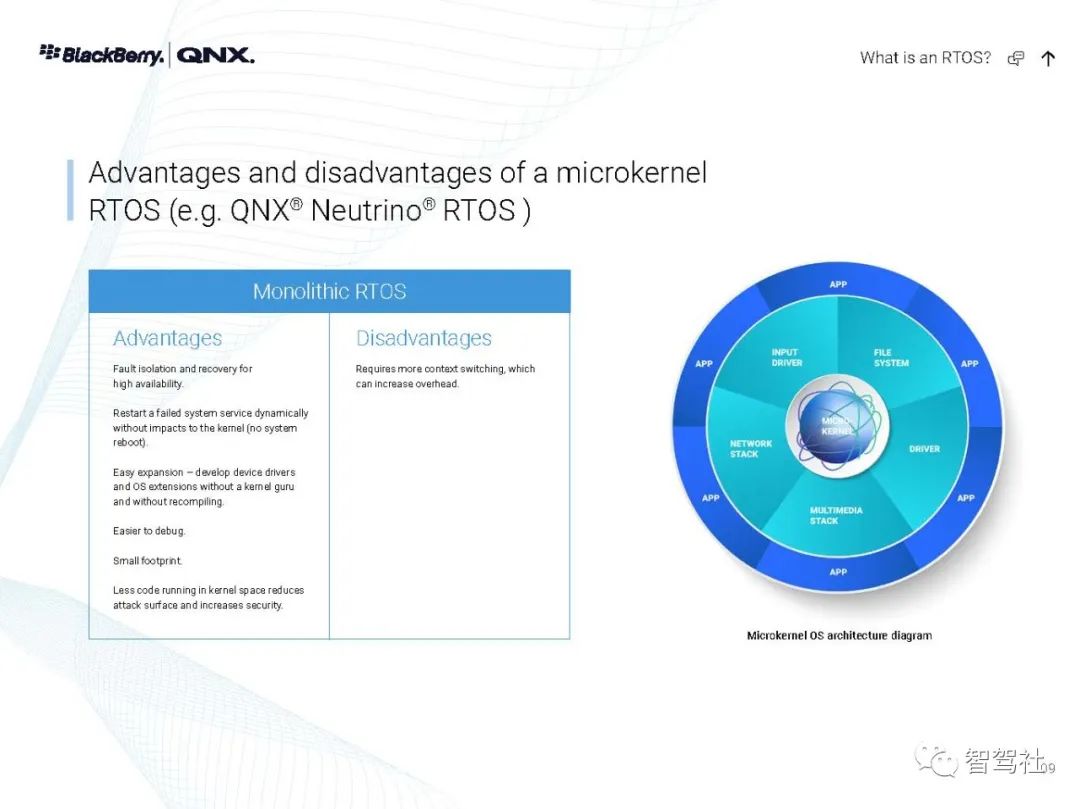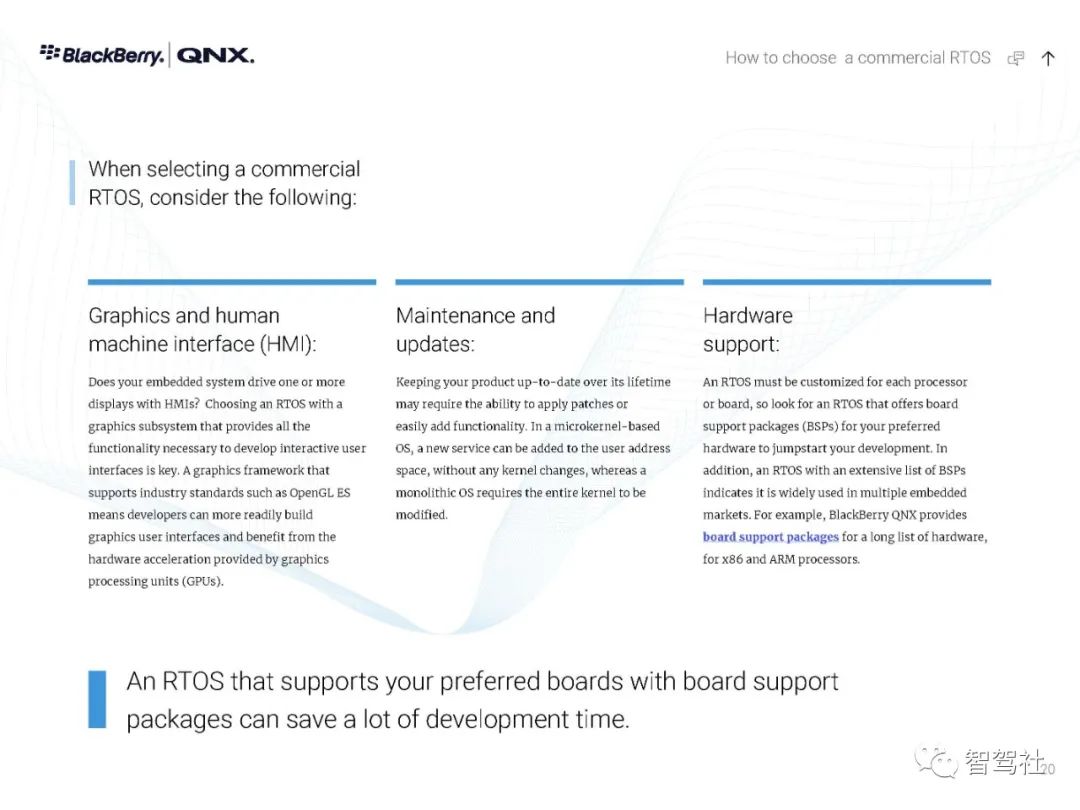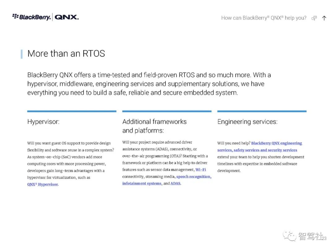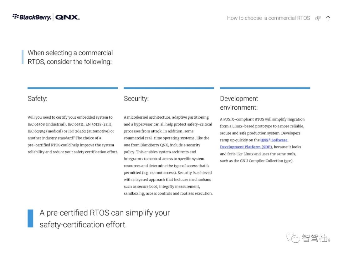 自 1980 年以来,制造商一直依靠 QNX 实时技术为其任务关键型应用提供动力--从医疗仪器和互联网路由器,到车载信息娱乐设备和 911 呼叫中心,再到核监控系统和军事通信,无所不包。无论是小型还是大型,无论是简单还是分布式,这些系统都有一个无与伦比的声誉,那就是一年365天、一天24小时不停地运行。QNX Neutrino 实时操作系统经受了时间的考验和实践的检验,它是在真正的微内核架构上建立的。在这种系统下,每个驱动程序、应用程序、协议栈和文件系统都在内核之外、受内存保护的用户空间安全运行。几乎所有的组件都可以在不影响其他组件或内核的情况下发生故障并被自动重新启动。没有其他商业实时操作系统能提供如此高水平的故障控制和恢复。QNX Neutrino 实时操作系统本身是模块化的,它能让你动态地升级模块、引入新功能或部署错误修复程序,而无需花费昂贵的停机时间或系统中断。人机界面技术变化很快。如果您的平台跟不上,您可能会被过时的、不支持的软件所困。QNX Neutrino 实时操作系统有一个独特的组合管理器,能从多种技术中创建一个统一的界面。它的通用应用平台能够在新的人机界面技术出现时添加这些技术。这使你可以使用最合适的图形技术,无论是视频、OpenGL ES、HTML5还是Qt5。QNX Neutrino 实时操作系统按照 POSIX 标准(1003.1-2003 POSIX.1)设计,只需简单地重新编译,就能移植传统的和开源的 UNIX、Linux 和互联网代码。通过标准的应用程序接口,可以重复使用应用程序代码,避免代价高昂的延迟,并缩短其学习曲线--加快开发周期,缩短上市时间。此外,QNX Neutrino 实时操作系统还预先集成了对各种连接技术、安全和防故障文件系统以及内置高可用性解决方案的开箱即用支持。QNX Neutrino 实时操作系统具有创新的安全机制,旨在帮助你轻松构建不可攻破的设备。加密文件系统、内存保护页和有限的根权限是该操作系统的核心功能,可用于创建安全可靠的设备。它有自适应分区,在过载条件下保证你的应用程序的系统资源,帮助你建立安全可靠的嵌入式系统,而不影响实时性能或灵活性。利用 QNX Neutrino 实时操作系统对各种 ARM Cortex A 系列和 x86 平台的支持,在选定的平台上快速启动开发。利用 QNX Neutrino 实时操作系统的资源管理器,简化了定制硬件的驱动程序开发。框架,与传统驱动程序不同,它能在受内存保护的用户空间中运行。BlackBerry QNX是一家值得信赖的安全操作系统、管理程序、框架和开发工具供应商,并为构建全球最关键的嵌入式系统提供专业支持和服务。该公司的技术在超过1.95亿辆汽车中得到了信任,并被部署在世界各地的嵌入式系统中,涉及多个行业。黑莓QNX成立于1980年,总部设在加拿大渥太华,2010年被黑莓收购。黑莓QNX软件和开发工具以标准为基础,使企业能够在各产品线和业务部门采用可扩展的软件平台战略。黑莓QNX软件组合,包括我们的安全预认证产品版本,是专门为嵌入式系统设计的,并可扩展到支持从单一用途的设备到高度复杂的混合关键性平台。客户依靠黑莓QNX的支持和专业服务团队,在整个产品开发周期内提供他们所需的专业知识。数以千计的公司已经部署了QNX的实时操作系统,以确保任务关键型系统的性能、安全和可靠性的理想组合。QNX 技术的核心是 QNX Neutrino® 实时操作系统(RTOS),它是一种功能全面、符合 POSIX 标准的实时操作系统,能在每个注重可靠性的行业(包括汽车、医疗设备、机器人、运输、重型机械和工业嵌入式系统)中实现新一代产品。微内核可靠性--QNX Neutrino 实时操作系统的微内核架构将每个应用程序、驱动程序、协议栈和文件系统都隔离在内核以外的独立地址空间内。这意味着,故障组件不会导致其他组件或内核瘫痪;它能立即重新启动,对系统性能的影响最小。实时可用性--QNX Neutrino 实时操作系统提供了只有实时操作系统才能提供的确定性。自适应分区等技术能保证关键进程获得按时完成任务所需的周期,同时保持复杂嵌入式系统所需的性能。全面的分层安全--利用 QNX Neutrino 实时操作系统的分层安全功能和 QNX 安全专家的帮助,可以采取全面的安全方法,准确实施的嵌入式系统所需的安全配置文件。可扩展性--QNX Neutrino 实时操作系统可在最新一代多核系统芯片(包括 ARMv8 和 x86-64)上扩展,它支持非对称多处理(AMP)和对称多处理(SMP),以及绑定多处理(BMP),这是 QNX 对标准 SMP 处理器亲和力的改进。板卡支持包(BSP)--由一个广泛的BSP库支持,适用于各种ARMv8、x86-64和旧板卡。QNX 操作系统得到了经过实践检验的开发工具(QNX 软件开发平台)的支持,并通过功能丰富的中间件(用于 ADAS 的 QNX 平台等)和工程服务得到了扩展。黑莓QNX还提供了符合IEC 61508 SIL 3、ISO 26262 ASIL D和其他功能安全标准(QNX OS for Safety、QNX Hypervisor for Safety)的嵌入式操作系统预认证版本。QNX Neutrino 实时操作系统是一种高性能、多线程、适用于 SMP 的微内核实时操作系统,具有开放系统的 POSIX 应用程序接口。QNX Neutrino 实时操作系统是一种高性能、多线程、适用于 SMP 的微内核实时操作系统,具有开放系统的 POSIX 应用程序接口。QNX Neutrino 实时操作系统坚固耐用且可大规模扩展,适用于从小型、资源有限的系统到高端分布式计算环境。全面的 MMU 保护使它能有效地用于关键任务的应用。可靠的架构-QNX Neutrino 实时操作系统的