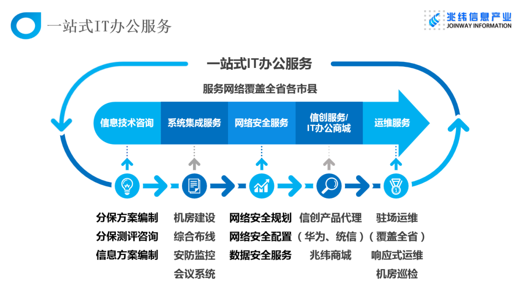 海南兆纬信息产业有限公司创立于1999年,怀着“实现自我,造福社会”的使命,追求“让世界充满AI,使OA敏捷安全”的愿景,经过22年砥砺前行,已经打造出一支硬核技术服务团队,建立了覆盖全省各市县的快速响应服务网络,公司业务涉及信息技术咨询、信息系统集成、运维服务、网络安全服务、信创服务、IT办公商城等,具备涉密信息系统集成(系统集成/运行维护/安防监控)乙级资质证书、信息系统建设和服务能力等级证书、ITSS信息技术服务标准符合性证书,专业为海南政府企业客户提供一站式优质IT办公服务,服务能力齐全。