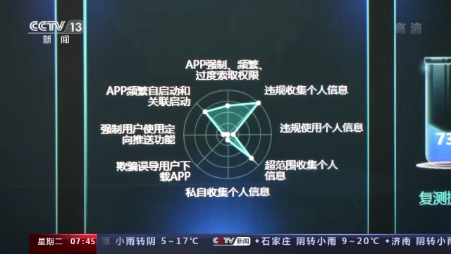 电信运营商信息安全中心负责人 温暖:我们会将操作日志的数据特征上区块链,确保它不能被窜改,同时再定期进行校验。如果日志一旦被窜改就说明存在问题。我们就会以风险的方式核查具体的事件。据了解,工信部通过制定标准、技术检验、专项整治、行业自律等措施,大力整治违规收集使用个人信息等侵害用户权益行为。去年累计检测208万款APP,通报1549款违规APP,对514款拒不整改的APP进行下架处理。