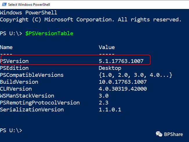 这个$符号在PowerShell里就是用来定义变量的,后面我们会讲到,现在只需要知道如何查看当前PowerShell的版本信息即可。