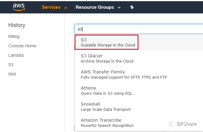 登录AWS,在Service里直接输入s3,然后选择"S3 scalable storage in the Cloud"