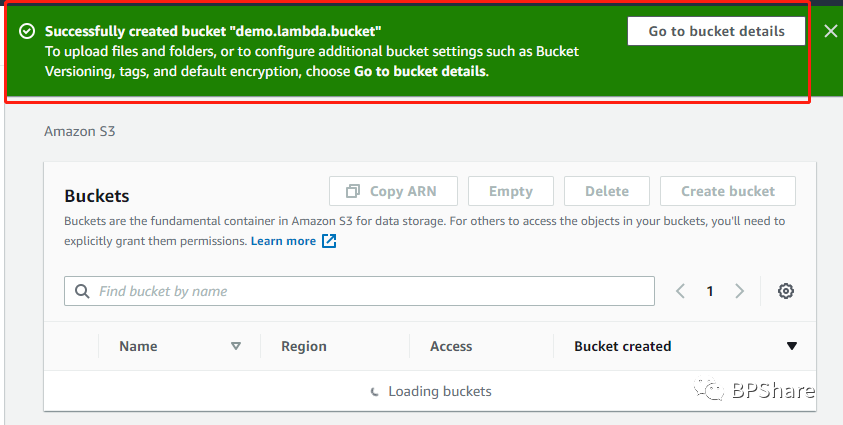Bucket创建成功会有如下提示: