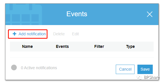 在新显示的页面,点击:"Add notification"