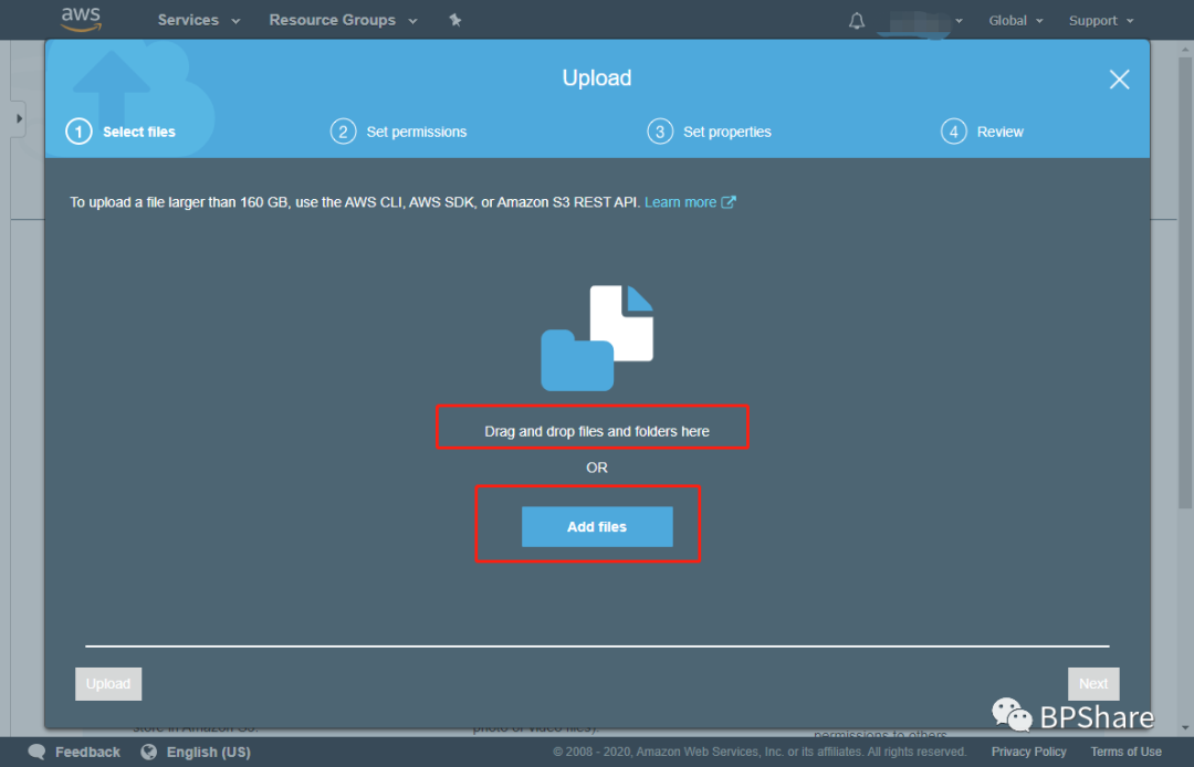 点击:Add Files按钮,或者直接将文件拖拽到Upload这个区域。