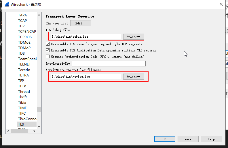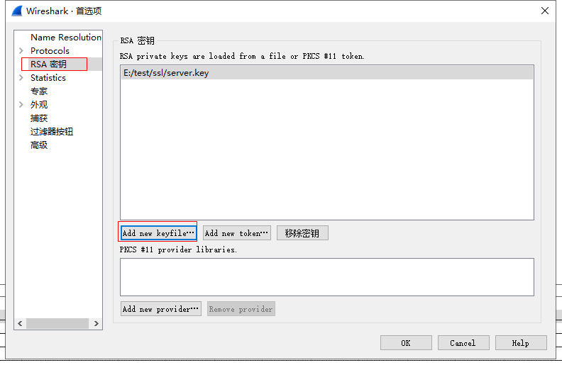 配置对应的私钥文件,把它添加到 wireshark 配置中: