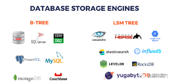 这是一张来自网上的两大阵营的一些数据库产品的清单,我们可以看出传统数据库使用B-TREE结构的比较多,而一些新兴的数据库系统往往使用LSM-TREE。LSM-TREE是Log-Structured Merge Tree的简称,是一种典型的不可变结构的存储引擎,其目的是为了降低可变结构存储引擎中写入数据需要先找到已经存在的PAGE,然后再进行修改的成本,从而实现更高并发的写入。因此LSM-TREE引擎的数据库天生对高并发写入/修改操作十分友好。不过LSM-TREE结构也不是完美的,在读性能上需要在多个副本之间做协同,因此读性能会受到一定的影响。