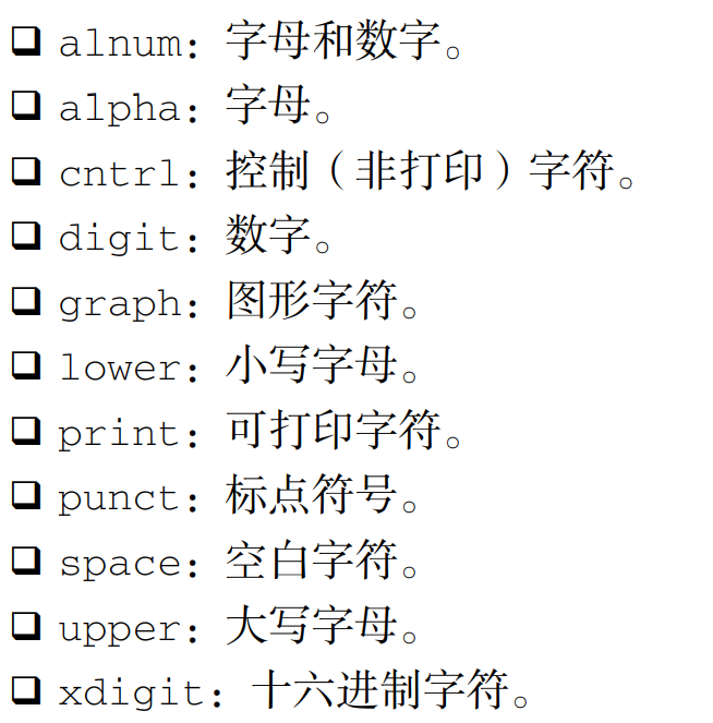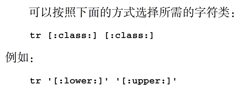 tr可以将不同的字符类作为集合使用,所支持的字符类如下所示。