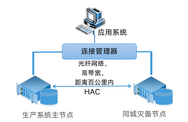 HAC主备节点状态一致性通过逻辑日志复制技术实现,因此要求主备服务器的数据库版本完全相同,主备服务器的硬件和操作系统版本尽量相同。使用时,HAC主节点接收业务请求,写逻辑日志,将逻辑日志置于发送缓冲区,通过局域网或广域网发送给各备节点,备节点接收到逻辑日志,在内存中进行重放,从而达到主备节点数据状态一致。通过连接管理器(CM)实现主备节点间互相切换。