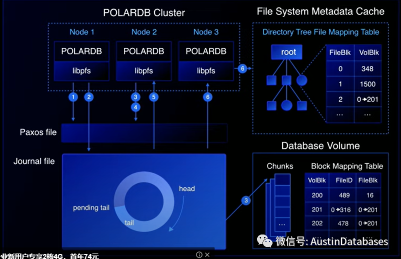 同时POLARFS 针对数据库系统将元数据信息缓存在内存中,减少或避免了I/O方面的元数据损耗。