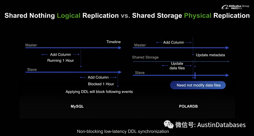 这样的改变对于数据库的一些操作的性能是有改变的,以DDL操作为例,之前的操作需要主库操作后,从库进行操作,而使用了REDO的方式进行了改变后,整体的UPDATE metadata 的方式中,数据的metadata 将不存在不一致的情况。而数据也将更新一次。
