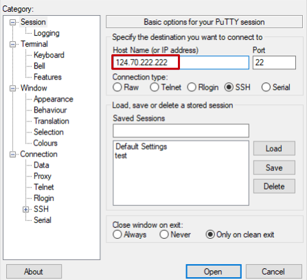 使用 SSH 工具(比如:PuTTY 等)从本地电脑通过配置弹性云服务器的弹性公网 IP 地址