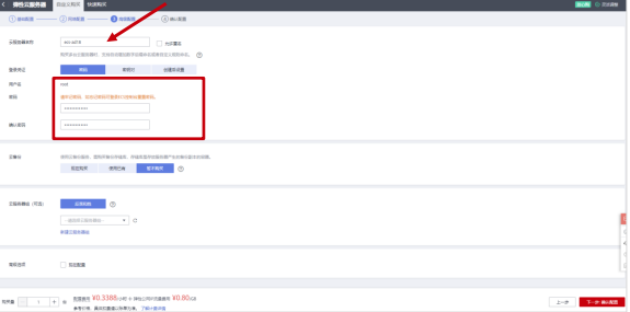 记住用户名为 root,然后输入自定义密码和确认密码,其余默认即可,单击"下一步确认设